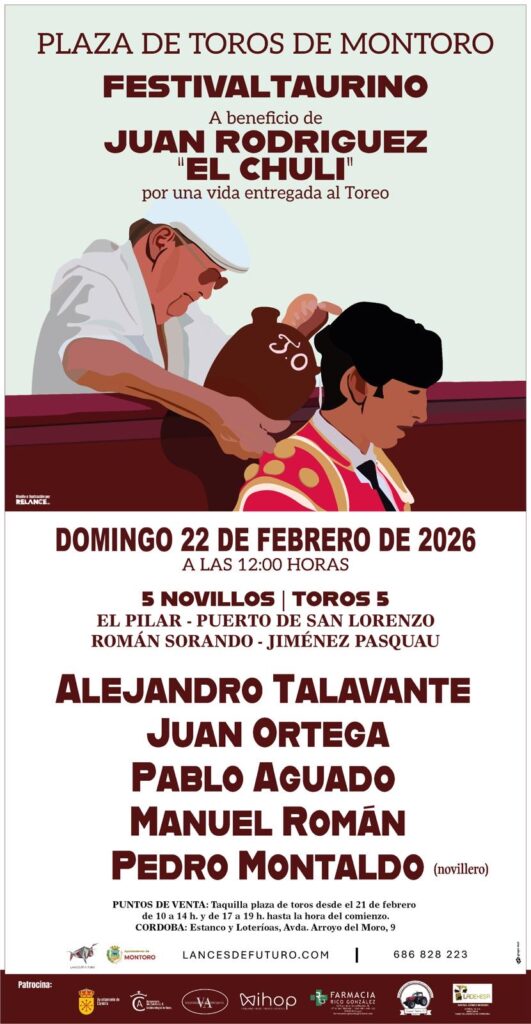 El próximo domingo 22 de febrero, a las 12:00 horas, la plaza de Montoro acogerá el festival aplazado en memoria de Juan Rodríguez ‘El Chuli’, una de esas figuras imprescindibles del toreo que ejercen su magisterio lejos de los focos, pero muy cerca de los toreros. Tras la suspensión del pasado mes de noviembre a causa de la lluvia, el homenaje podrá celebrarse finalmente con un cartel de primer nivel y con la presencia de un ejemplar de la ganadería salmantina de El Pilar.